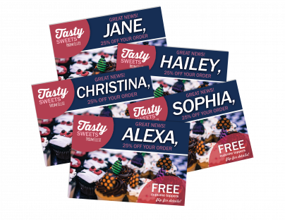 Each piece of mail can be personalized beyond the address box. From variable graphics and custom offers to variable bar-codes and colors.